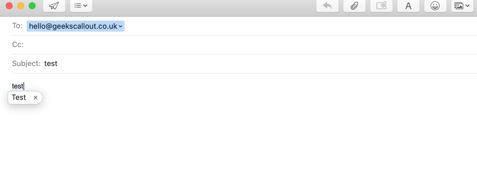 Since the email has been configured and messages are downloading. Meanwhile, lets run a sent test to make sure if email do sent out without any glitch. All you have to do click on “New Message” and screen below will appear up. Type your own email address where it says “To” and write anything next to “Subject“, in this case we have mentioned test. You can write anything in subject as well as message body. Once you have done that, click on that top little “aeroplane” sign above “To” and you will hear the flying sound.