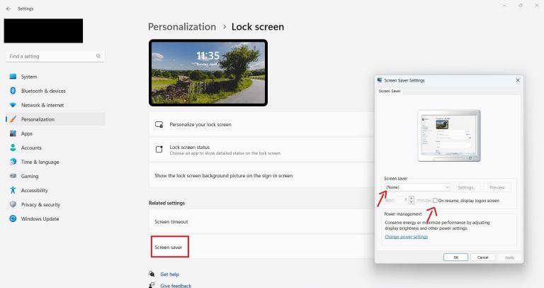 You may go to the Screensaver settings via Lock Screen in the Personalisation tab available in your settings. You may select the “None” beneath the “Screensaver” heading and uncheck the box against the, “On resume, display logon screen.” Then you may click on “OK.”
